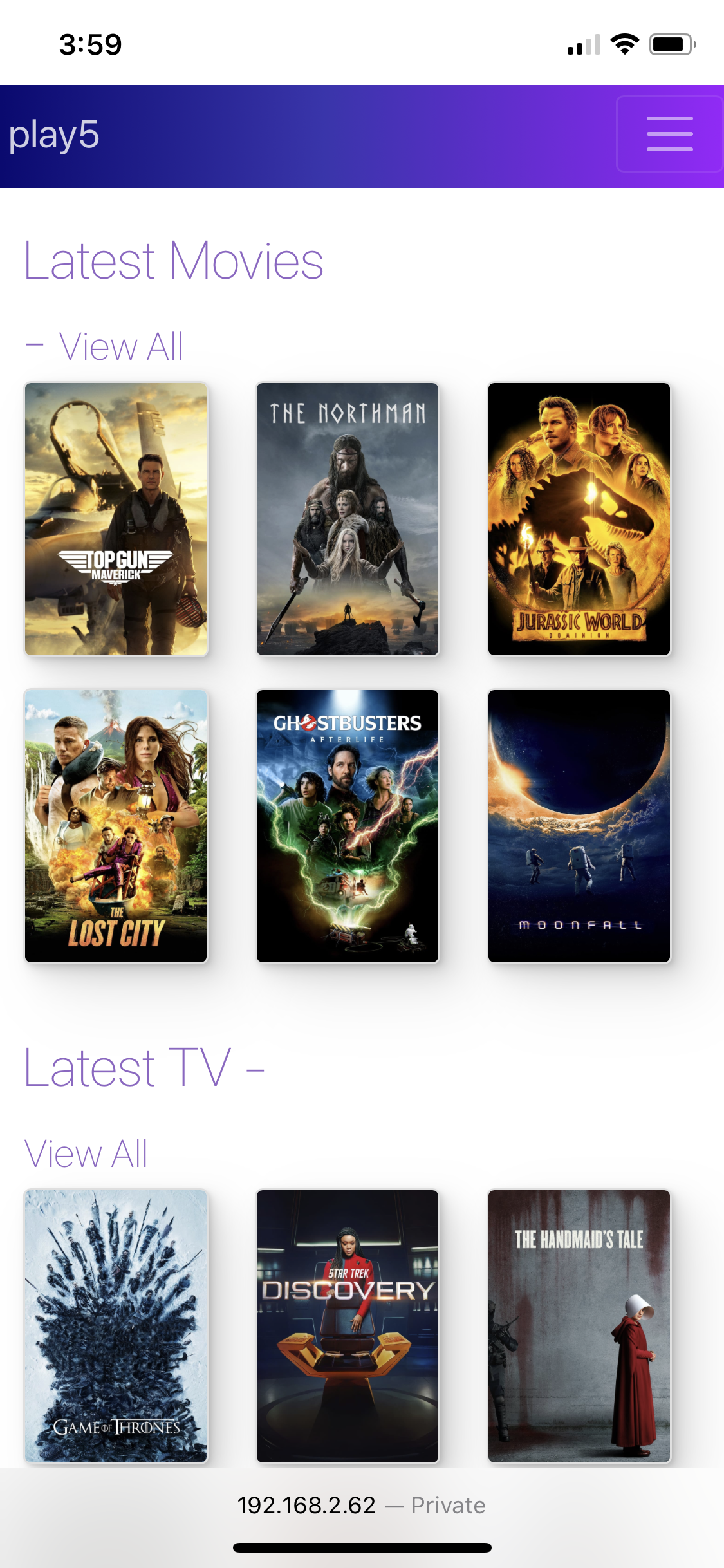 play5 media server focuses on simplicity, both in terms of hosting and consuming the media. play5 is essentially a web server, that streams media using HTML5 specifications. Quickly deploy the server on popular operating systems. Make the server accessible over the local network or expose it over the internet for external access. The media server has a simple first-run wizard that can be used to specify the movie and tv show library folders. The server scans the contents, downloads metadata and cover art and you are all set. Most popular devices with web browsers can be used to enjoy the media contents.